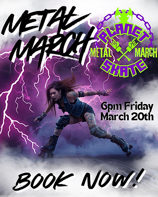 March is Metal month so on Friday the 20th of March we’ll be listening to metal music and dressing metal! It’s just one Friday of the whole month so don’t miss your chance to rollerskate to the music YOU love! BOOK NOW!